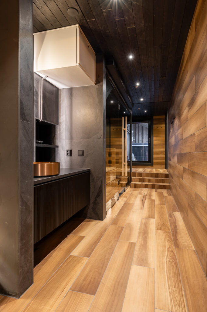 You can count on us to make your vacation care-free.There are two dedicated parking spaces in the heated garage complete with electric charging, a private gym, office space, fully equipped kitchen with modern appliances, and above all, the exclusive spa with a traditional Finnish sauna and an outdoor hot tub. This is the high-end penthouse that makes your Lapland holiday perfect.