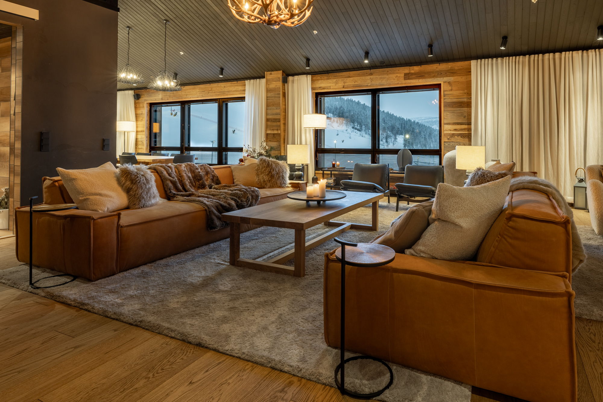 In this 309 sq. meter architectural masterpiece, design meets cutting-edge technology and modern comfort. The spectacular view opens to the slopes of Levi. High quality materials combined with a unique design guarantees an elegant atmosphere beyond compare. In addition to the wonders of local culture and nature, the Penthouse is located in the immediate vicinity of the ski-lifts, with the brand new Glacier-slope being within a 1 minute walking distance.