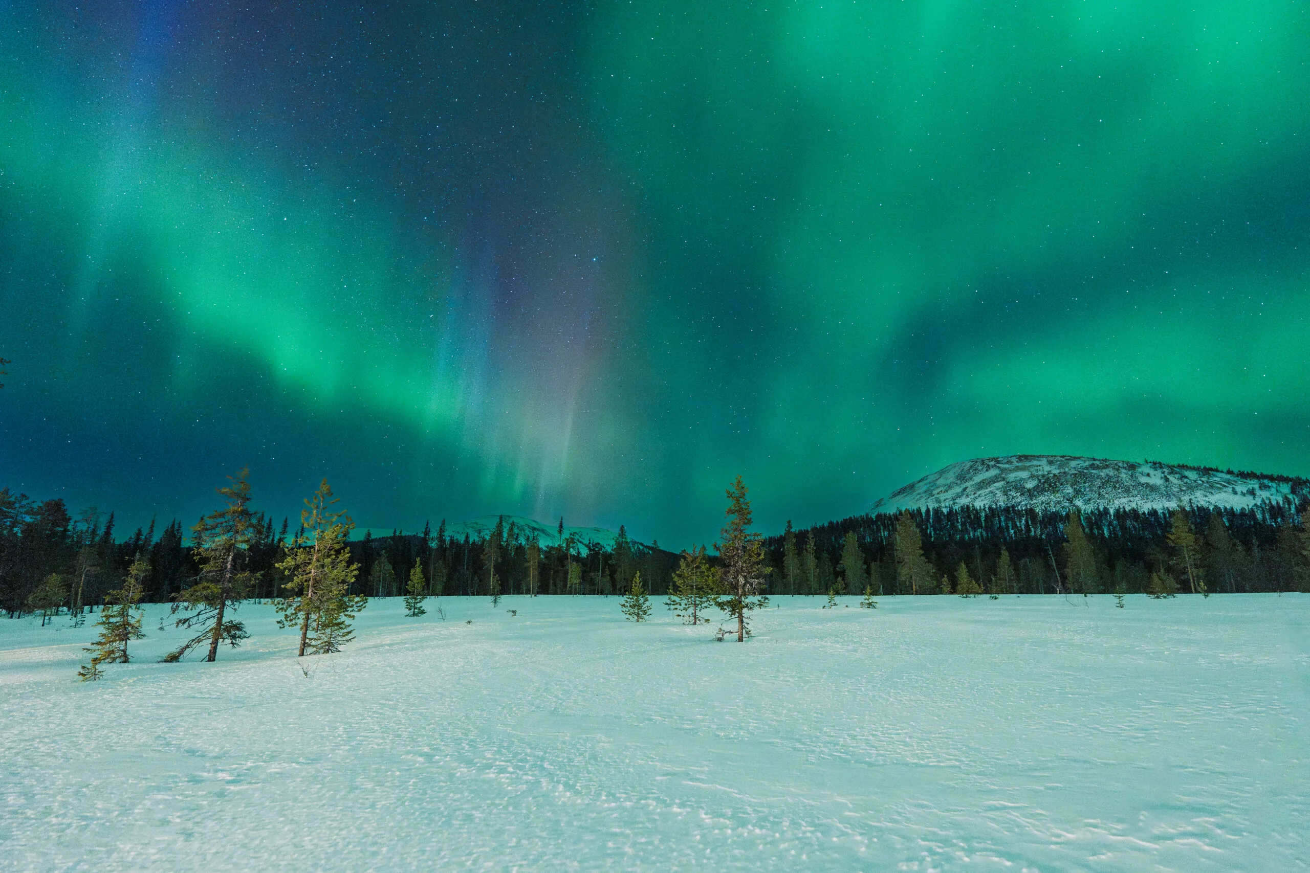 Evening snowmobile tour in the forests with a perfect view to the Northern sky.